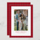 A festive houndstooth pattern frames a single vertical photo on this classic holiday card. The simple type allows room for a custom greeting ("Merry Christmas" can be changed to "Happy Holidays" or anything you'd like), family name and year. The background is a Christmas red, but it can be changed by clicking "customize." The back features a matching red houndstooth pattern.