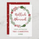 Couronne de Noël verte et rouge, carte de vacances avec les mots Joyeux Noël en mannois : Nollick Ghennal.