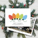 Carte de Noël moderne simple avec une rangée de lumières de vacances aux couleurs vives et photo de famille (arrière). Typographie minimaliste. Nettoyer le design simple. Toutes les zones de texte personnalisables. Contactez-nous pour obtenir de l'aide pour personnaliser ou customiser vos souhaits individuels. Joyeuses vacances !