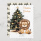 Cartes Pour Fêtes Annuelles Illustration de lion mignon avec arbre de fête