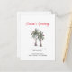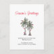 Carte postale de Noël Tropical Beach, avec illustration de palmiers et typographie personnalisable. Une façon festive d'envoyer des voeux de vacances à des amis et à la famille des tropiques.