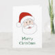 Illustration de style dessin animé du Père Noël avec un visage joyeux sur le devant avec un type/zone de texte disant 'Joyeux Noël' en-dessous et des zones de texte à l'intérieur, qui peuvent être modifiées pour personnaliser.