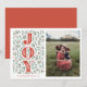 La carte de vœux photo de vacances JOY botanique rouge et vert présente un design festif mais discret qui équilibre parfaitement le charme vibrant des fêtes avec une esthétique moderne et naturelle. Le côté gauche de la carte est dominé par le mot audacieux "JOY", affiché verticalement dans une couleur rouge frappante. Autour de ce mot joyeux se trouvent des illustrations délicates et dessinées à la main de feuilles de houx et de baies, créant une sensation botanique luxuriante. Le feuillage riche rouge et vert s'entrelace élégamment avec les lettres, ajoutant une sensation de chaleur et de beauté inspirée de la nature.