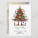 Illustration amusante d'arbre de Noël sur une carte de vacances plate. Le dos de la carte est une jolie conception abstraite de flocon de neige. Le texte peut être modifié. L'IA a aidé graphisme acheté à des fins commerciales. Oeuvre : RedHeronLighthouse et RavenPrintableDesign