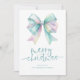 Iridescente Coquette Bow 2026 Calendrier Joyeux Noël Joyeux Noël. Disponible numériquement et imprimé. Joyeux Noël est dans un script élégant et personnalisez votre nom sous. Un calendrier pratique pour 2026 est au verso.