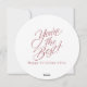 "Je t'aime coudre beaucoup" texte rouge entoure un thème de couture en forme de cœur avec des fils, des ciseaux, des bobines, des aiguilles et des épingles, des rubans à mesurer et des boutons. Une carte parfaite à envoyer à la Saint-Valentin à quelqu'un qui aime la couture ou pour remercier une couturière. "Vous êtes le meilleur" au verso avec un modèle de texte.