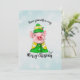 Souhaitez à vos amis ou à votre famille cette carte de voeux "Ham you a very Joyeux Noël", ou changez le texte de début. L'image graphique est une tête de cochon portant un costume d'elfe et un casquette. La typographie de "Joyeux Noël" est sous l'image. Ce design a un arrière - plan de bokeh vert turquoise".