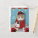 La carte postale de Noël avec Bubba Kitty s'est habillée dans un T-shirt, un casquette de plaid et une écharpe rouges. Il regarde comme il pense à quelque chose et le texte est : "Je ne peux pas attendre 'jusqu'à Noël !" Vous pouvez customiser le texte.