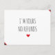 Vous cherchez une carte de Saint Valentin à part égale romantique et hilarante? Dites-le haut et fort avec cette "Je suis à vous Pas de remboursement Carte postale de la Saint-Valentin"! Parfait pour les couples qui aiment mélanger l'affection sincère avec un brin d'humour, cette carte postale est un moyen exceptionnel d'express votre amour. Doté de l'élégante phrase "Je suis à vous, pas de remboursement", ce design est un clin d'oeil ludique à l'engagement avec une touche moderne. Idéal pour les partenaires qui apprécient les gestes pleins d’esprit et de légèreté qui portent encore un message profond d’amour et de dévotion. Que vous fêtiez votre première Saint-Valentin ou votre 50e anniversaire, cette carte postale est une façon amusante et mémorable de dire, "Vous êtes coincé avec moi, pour toujours !" Je suis à vous Aucun remboursement heureux Valentines Day Carte postale