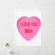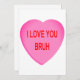Je t'aime la carte de voeux de la Saint Valentin de Bruh. Coeur rose vif avec des lettres rouges. Design tendance, amusant, minimaliste, classique. Voir cette photo sur d'autres cadeaux, voir ci-dessous. Vierge à l'intérieur pour pouvoir écrire un message personnalisé. Achetez ceci pour votre Bruh préféré. Achetez pour la Saint-Valentin, Joyeux Jour de Noël, pour Noël, ou simplement parce que.