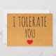 Cartes Pour Fêtes Annuelles Je te tolère Saint-Valentin sarcastique