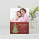 Ajoutez votre photo à l'avant de cette carte de voeux personnalisée à 2 faces, express que Jésus est la raison de la saison de Noël ! Sympa sapin de Noël avec une étoile jaune sur le dessus, et un message de Noël religieux inspirant sur un arrière - plan marron rouge foncé.