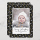Envoyez des salutations de vacances personnalisables et personnalisées à vos amis, vos collègues et votre famille en cartes photos simples, minimalistes, élégants, amusants, festifs et modernes ! Un beau cadre de variété d'or et blanc Pine Tree Acorns sur arrière - plan noir entoure votre photo sur papier rond. Le message de bienvenue "Joyeux Noël" est écrit en calligraphie élégante, et ci-dessous présente votre message de bienvenue personnalisé de votre nom de famille dans la typographie moderne. Reverse pour révéler une belle l'arrière - plan motif de Noël Pine Tree Acorns.