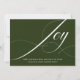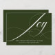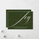 Une simple carte de vacances avec joie en script de calligraphie blanche sur un arrière - plan vert foncé. Personnalisez un salutation et vos noms de famille. L'envers est coordonné en vert.