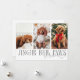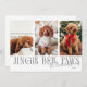 Minimal and modern holiday photo template card featuring 3 photos of your pup on the front with a text that says "Jingle Bell Paws" with your family signature. You can also add another picture and message on the back. The background is white.