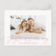 Envoyez des salutations de vacances élégantes cette année avec notre carte postale de vacances Jingle All The Way! La carte postale moderne de vacances présente "Jingle All The Way" dans une superposition rose en style rose. Personnalisez l'avant de la carte postale en ajoutant votre photo et votre nom. La simple carte postale de vacances s'inverse pour afficher votre adresse de retour et votre message personnalisé.