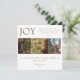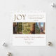 Cette carte de Noël présente un design simple avec le mot "Joy" comme point central et un jeu de couleurs doré et bordeaux. Le verset de Luc 2:10 - "Et l'ange leur dit : "Ne crains pas, car voici, je vous apporte de bonnes nouvelles de grande joie qui seront pour tout le peuple" est situé en haut à droite dans une petite police délicate. Il y a de la place pour trois photos de famille ainsi que l'occasion d'écrire votre propre salutation. Je vous souhaite toutes les bénédictions de la saison!