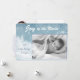 Deux de vos photographies spéciales occupent le devant de la scène sur cette carte de vacances moderne et plate. La photo du devant est encadrée dans un joli fond bleu neige et blanc de style bokeh. Le texte blanc en haut indique "JOIE à la Monde", tandis que votre texte de signature personnalisé est en gris bleu clair sur le côté gauche de la photographie. Le dos de la carte comporte un autre champ de modèle de photo, avec votre texte en gris et bleu sur le côté droit. Élégance simple qui laisse vos photographies briller !