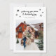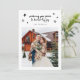 Carte de fête religieuse fantasque et élégante pour les jeunes mariés annonçant leur mariage avec un texte qui dit "vous souhaiter la paix et la joie céleste" en haut de la photo du couple. Le texte est une police de script manuscrite. L'arrière - plan est blanc.