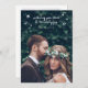 Carte de fête religieuse fantasque et élégante pour les jeunes mariés annonçant leur mariage avec un texte qui dit "vous souhaiter la paix et la joie céleste" en haut de la photo du couple. Le texte est une police de script manuscrite.