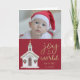 La carte de voeux de Noël est ornée d'une petite église blanche, ornée de couronnes, de lumières et d'une croix sur le clocher. La "joie au monde" manuscrite a (faux) la parties scintillant d'or. Ajoutez votre propre photo pour une carte personnalisée unique à l'avant.