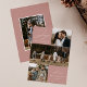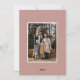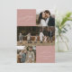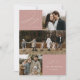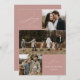 Carte de vacances moderne avec la phrase "Joie au monde" en élégante écriture blanche sur fond rose poussiéreux. Le devant du design présente 3 de vos photos de famille préférées disposées dans un style collage. Personnalisez le devant de la carte de vacances multi-photos avec le nom de votre famille et l'année. La carte se retourne pour afficher une photo supplémentaire.