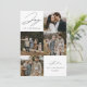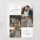 Carte de vacances moderne avec la phrase "Joie au monde" en élégante écriture noire sur fond blanc. Le devant du design présente 4 de vos photos de famille préférées disposées dans une mise en page de type collage. Personnalisez le devant de la carte de Noël multi-photos avec le nom de votre famille et l'année. La carte se retourne pour afficher une photo supplémentaire.