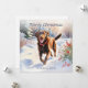Une carte de Noël avec l'image d'un Labrador chocolat qui profite d'une promenade dans la neige, dans un style aquarelle. Le message « Joyeux Noël » est en haut en typographie élégante, tandis que le texte sous le chien peut être personnalisé avec votre/vos nom(s). Idéal pour les propriétaires de Labradors chocolat et les amateurs de chiens.