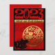Dans un carré se trouve un découpage en papier de lapin noir, placé dans le coin gauche regardant une forme ronde dorée à l'intérieur de laquelle se trouve le deuxième lapin avec un idéogramme. Derrière la scène, il y a un fond rouge sur lequel des lettres décoratives et ornées forment les mots : ANNÉE DU LAPIN. Conception sur carte postale de vacances verticale avec un grand 2023 rouge sur fond noir. Vous pouvez facilement changer le numéro (police, couleur, taille et position) en cliquant sur le bouton de personnalisation. Carte de vacances horizontale assortie, carte de vœux verticale et horizontale et plus encore... Parfait pour le Nouvel An chinois du Lapin 2023 ou un anniversaire (personnes nées sous l'année du Lapin).