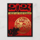 Dans un carré se trouve un découpage en papier de lapin noir, placé dans le coin gauche regardant une forme ronde dorée à l'intérieur de laquelle se trouve le deuxième lapin avec un idéogramme. Derrière la scène, il y a un fond rouge sur lequel des lettres décoratives et ornées forment les mots : ANNÉE DU LAPIN. Conception sur carte postale de vacances verticale avec un grand 2023 rouge sur fond noir. Vous pouvez facilement changer le numéro (police, couleur, taille et position) en cliquant sur le bouton personnaliser. Carte de vacances horizontale assortie, carte de vœux verticale et horizontale et plus encore... Parfait pour le Nouvel An chinois du Lapin 2023 ou un anniversaire (personnes nées l'Année du Lapin).
