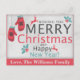 Envoyez des Joyeuses Fêtes à vos amis et à votre famille ce jour férié en envoyant cette carte de Noël d'inspiration rétro. Ce design amusant de cartes postales de Noël comprend un arrière - plan rouge et blanc avec des mitaines rouges accrochées à la corde. Un renne rouge mignon et un faux orteil complètent cette carte de voeux pour Noël. Le texte festif dit "Je vous souhaite Joyeux Noël et Bonne Année." Signez votre nom au bas de la carte postale de vacances avec une police personnalisable.