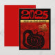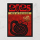 Dans un carré se trouve un découpage en papier de serpent noir, placé au centre, regardant un ornement doré à l'intérieur duquel se trouve le deuxième serpent avec un idéogramme. Derrière la scène, il y a un fond rouge sur lequel des lettres décoratives et ornées forment les mots : ANNÉE DU SERPENT. Conception sur une carte postale de vacances verticale avec un grand 2025 rouge personnalisable sur fond noir. Vous pouvez facilement changer le numéro (police, couleur, taille et position) en cliquant sur le bouton de personnalisation. Carte postale de vacances assortie et plus encore... Parfait pour le Nouvel An chinois du Serpent 2025 ou un anniversaire (personnes nées dans l'Année du Serpent). --------- "Le serpent (蛇) est le sixième du cycle de douze ans des animaux qui apparaissent dans le zodiaque chinois lié au calendrier chinois.