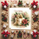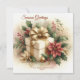 Envoyez une carte de vacances carrée unique "Seasons Greetings" avec ce joli paquet de coquette emballé avec un ruban doré, entouré de houx et de poinsettias. Tous les modèles sont fournis avec une image au verso.