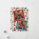 Une carte de Noël adorable avec une ambiance rétro chaleureuse et cosy. Il s'agit d'un modèle à deux photos. Vous pouvez télécharger votre portrait de famille des fêtes dans la zone de personnalisation. L'arrière-plan représente de mignons enfants sur des luges en rouge et vert.