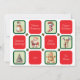 Jolies images sur le thème de Noël dans des carrés verts individuels alternant avec des carrés rouges qui contiennent chacun des vœux de vacances différents. Les images sont un bonhomme de neige, une chaussette rayée comme un bâton de bonbon, un Père Noël, un renne, un sapin de Noël décoré et un biscuit en forme de bonhomme en pain d'épice. Tous les vœux de vacances peuvent être facilement modifiés pour n'importe quel message que vous préférez. Le texte au dos peut également être facilement modifié ou supprimé si vous souhaitez écrire votre message à la main.
