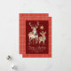 Deux cerfs sont habillés pour l'hiver en casquette et en foulards. Une étoile jaune doré est au-dessus d'eux. Joyeux Noël est écrit dans un script festif suivi par Joyeux Nouvel An dans une police traditionnelle. Deux lignes supplémentaires vous permettent de customiser votre message. Il y a aussi un message pré-imprimé au verso que vous pouvez customiser. Tout le texte est modifiable.