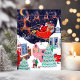 La Nuit avant Noël avec le père Père Noël Noël dans son traîneau et ses rennes Rudolf le Reindeer au-dessus d'un village nordique Noël paysage de la scène de neige de Noël. OEuvre originale de Caroline Bonne Müller