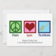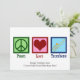 Carte personnalisée Paix Amour Trombone pour un membre de la fanfare qui aime jouer d'un instrument à vent. Un signe de paix, un cœur et un trombone mignons sur des cartes de vacances personnalisées.