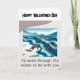 Une carte douce et sentimentale pour votre Saint-Valentin avec une petite tortue de mer colorée montrant son amour nageant à travers l'océan bleu ondulé. Beaucoup de petits coeurs flottants. Une carte de Jour des Valentines amusante que tout le monde aimerait recevoir.
