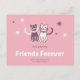Cette carte postale célèbre la joie d'une amitié de toute une vie avec un design charmant mettant en vedette deux chats adorables, côte à côte, symbolisant le lien indéfectible entre amis. Le fond rose ludique, associé au doux message "Amis pour toujours", fait de cette carte postale un souvenir charmant pour n'importe quelle amitié. L'espace supplémentaire pour un message personnalisable au dos vous permet d'ajouter un mot sincère, le rendant encore plus spécial pour votre meilleur ami.