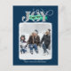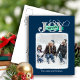 Cartes Pour Fêtes Annuelles JOY Festive Blue Modern Script Photo de Noël