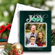 Cartes Pour Fêtes Annuelles JOY Festive Green Modern Script Photo de Noël