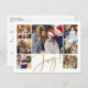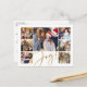 Carte postale moderne de Noël avec 7 photos, Joy écriture manuscrite en or. Personnalisez avec plus de détails avec votre message à l'arrière.