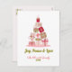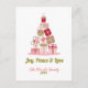 Elégante carte de vacances non photo.Cette carte de vacances chic et élégant "Joy, Peace & Love" dispose d'un arbre de Noël moderne et minimal avec des accents de cadeaux rouges et roses. Le texte élégant peut être entièrement personnalisé avec votre choix de salutation, nom de famille, année, et un message personnalisé à l'intérieur de la carte. Joyeuses fêtes !