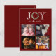 Festive "Joie" à la typographie du monde avec fausse couronne d'eucalyptus pour la lettre "O". Arrière - plan traditionnel rouge de Noël. Ajoutez votre photo personnelle pour compléter cette carte de vacances. Ajoutez votre propre sentiment de vacances et les noms à l'envers. La couleur rouge est portée au dos de cette carte.