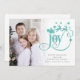 Cartes Pour Fêtes Annuelles Joy Turquoise Père Noël Sleigh Script Photo Noël