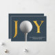 Célébrez la saison avec une touche d'élégance et un amour pour le jeu. Cette carte de Noël moderne présente le message joyeux "JOY" dans un imprimé faux or élégant, ajoutant une atmosphère festive à vos salutations de vacances. Le tour intelligent ? Le "O" dans "JOY" est remplacé par une photo de gros plan d'une balle de golf reposant parfaitement sur un tee, mêlant l'esprit de la saison à une passion pour le golf. ❄ ❄ ❄ Parfait pour les amateurs de golf, cette carte rassemble la chaleur des vacances avec un clin d'oeil subtil au jeu. Que vous envoyiez vos souhaits à un autre golfeur ou que vous appréciiez simplement le design unique, cette carte offre une touche sophistiquée et personnelle à vos célébrations de vacances. ❄ ❄ Facilement personnalisé. Veuillez contacter pour obtenir de l'aide sur la personnalisation, la personnalisation ou d'autres produits de papeterie liés au golf. Nous sommes ici pour aider !