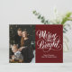 Joyeuse et brillante calligraphie rouge Carte de vacances photo moderne. Envoyez des voeux de vacances personnalisables et personnalisés à vos amis, collègues et famille dans des cartes de style simple, chic, élégant et moderne design photo festif, naturel minimaliste! Ci-dessous la calligraphie présente votre message de voeux personnalisé dans la typographie moderne.