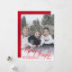 Cette carte simple est élégante et minimaliste. Il dispose d'une photo pleine image avec script de calligraphie rouge lisant "Joyeux et lumineux." Il y a de la place pour vos noms et l'année. Belle façon d'envoyer des voeux chauds pour Noël ou la saison des Fêtes.