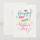 Mignonne première carte de Fête des Mères pour la nouvelle maman que vous connaissez. Ajoutez votre message spécial à l'envers en cliquant sur le bouton "Personnaliser" ci-dessus. La carte est dotée d'une typographie moderne, lumineuse et colorée, qui ne manquera pas d'apporter sourires et joie à la 1ère Mère